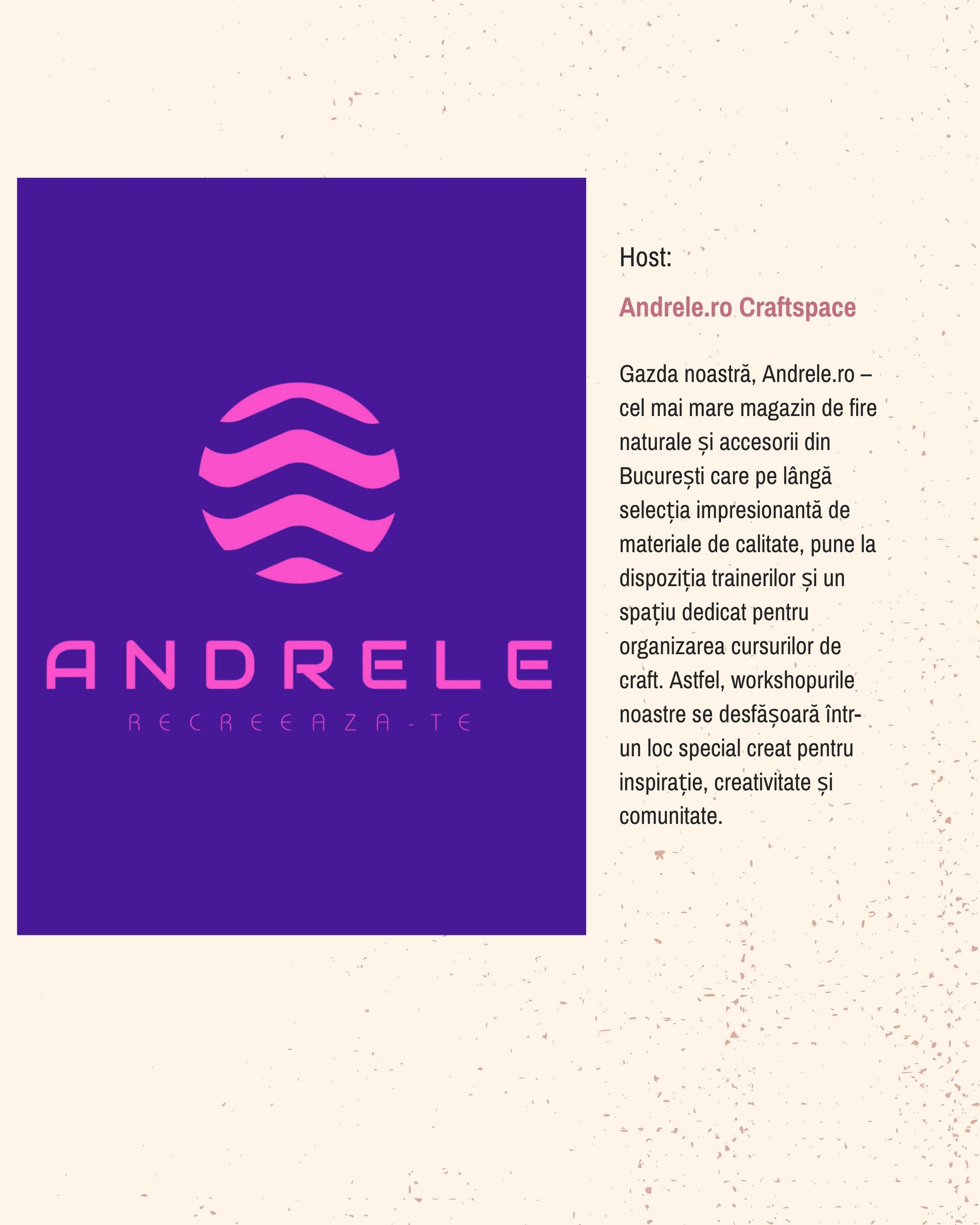 Atelierul va avea loc vineri, 21 noiembrie 2025, de la ora 18:00, în cadrul ANDRELE SHOWROOM București (lângă Metrou Eroilor).